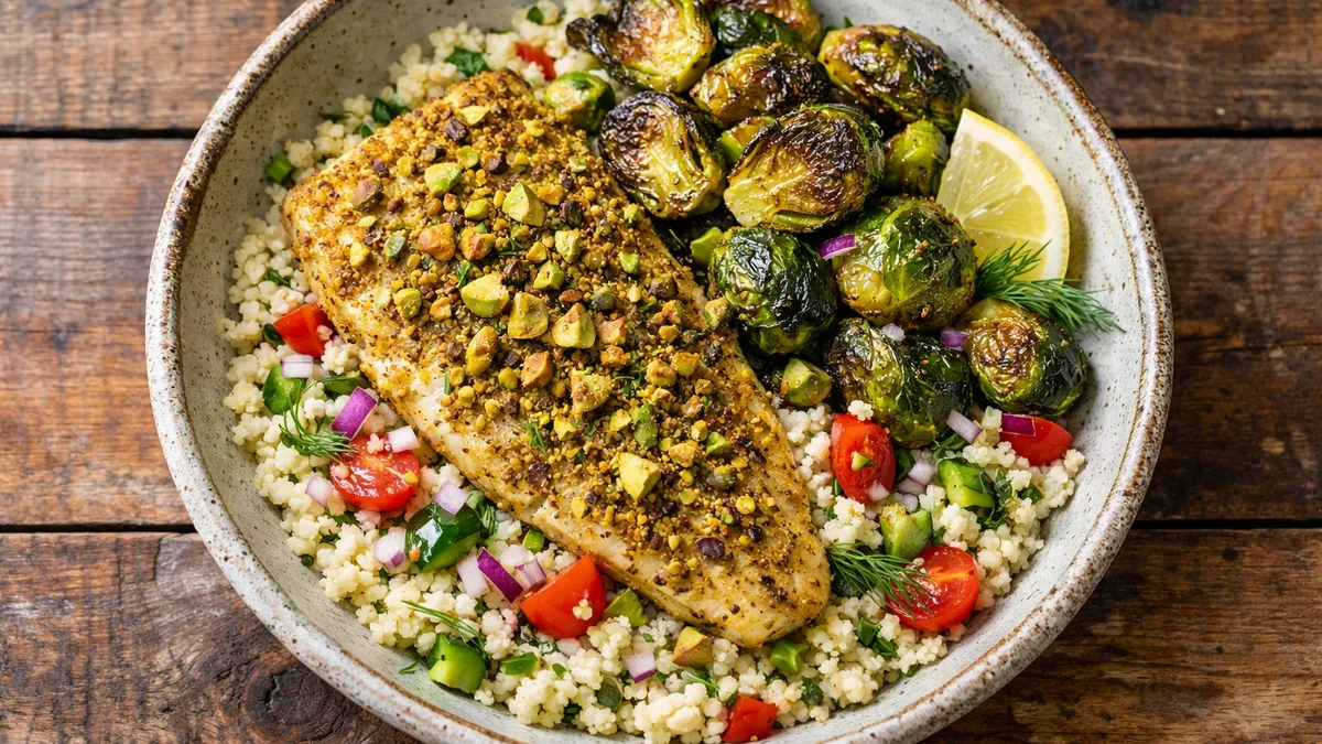 with Za'atar Brussels Sprouts & Dilled Couscous