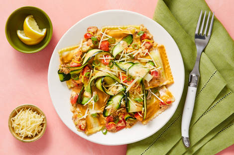 with Zucchini Ribbons, Tomato & Creamy Lemon Sauce