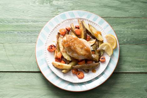 with Thyme-Roasted Potatoes and Carrots