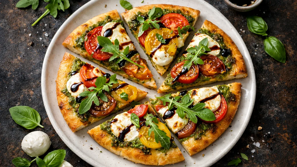 with Fresh Mozzarella, Pesto, and Arugula