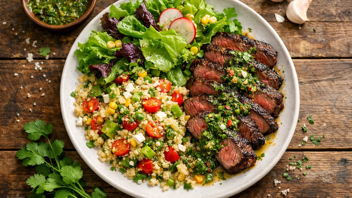 with Couscous Salad & Cilantro-Scallion Chimichurri