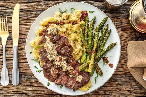 over Mashed Potatoes and Roasted Asparagus
