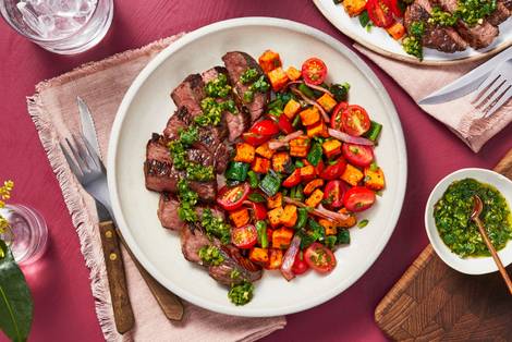 with a Sweet Potato, Poblano, and Tomato Jumble