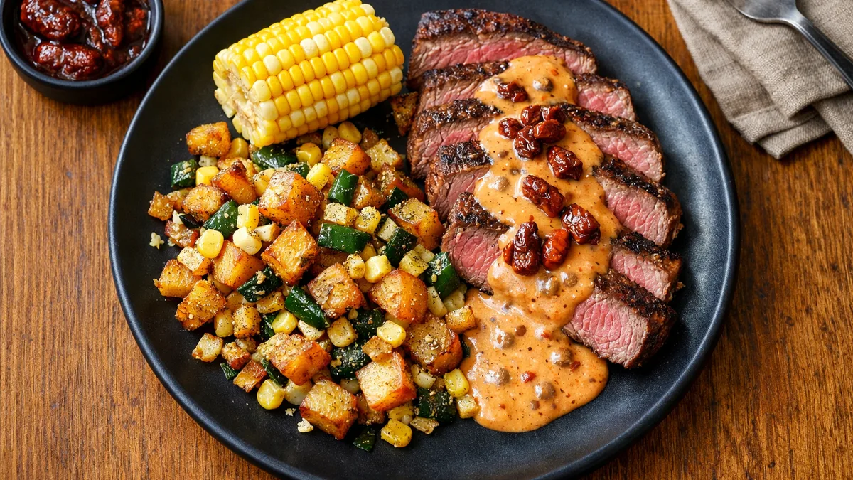 with Poblano, Corn, and Crispy Potato Hash