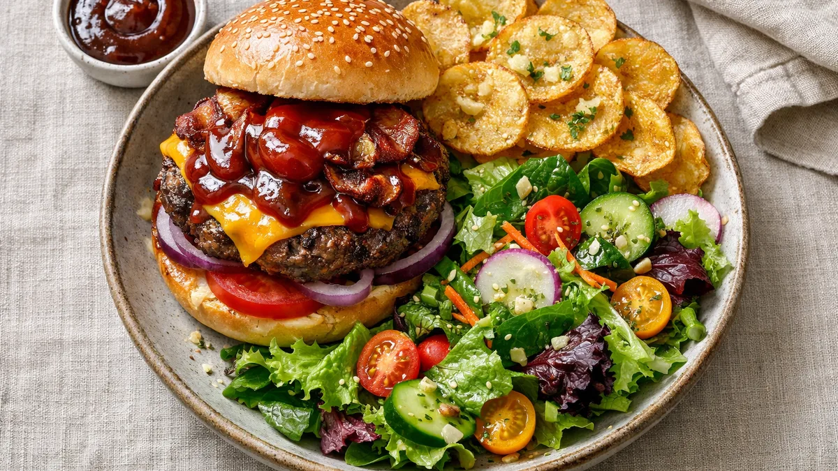 with Garlic Potato Chips and Green Salad