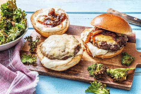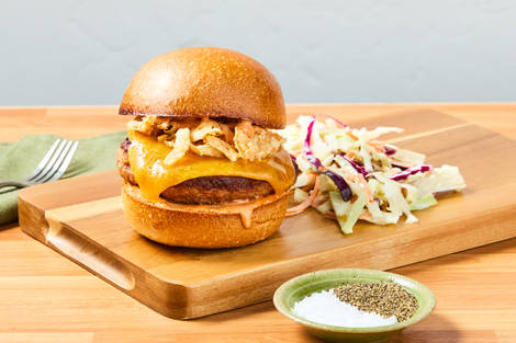 with Crispy Fried Onions & Creamy Coleslaw
