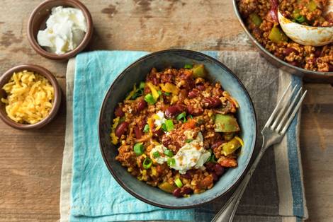 with Kidney Beans, Cheddar Cheese, and Sour Cream