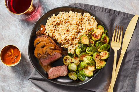 with Roasted Brussels Sprouts & Couscous