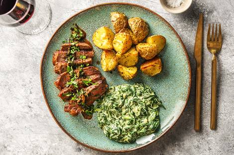 with Crispy Parmesan Potatoes and Roasted Baby Broccoli