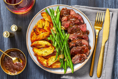 with Garlic Mashed Potatoes and Roasted Green Beans