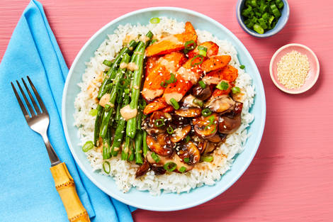 with Roasted Veggies, Scallions & Sesame Seeds