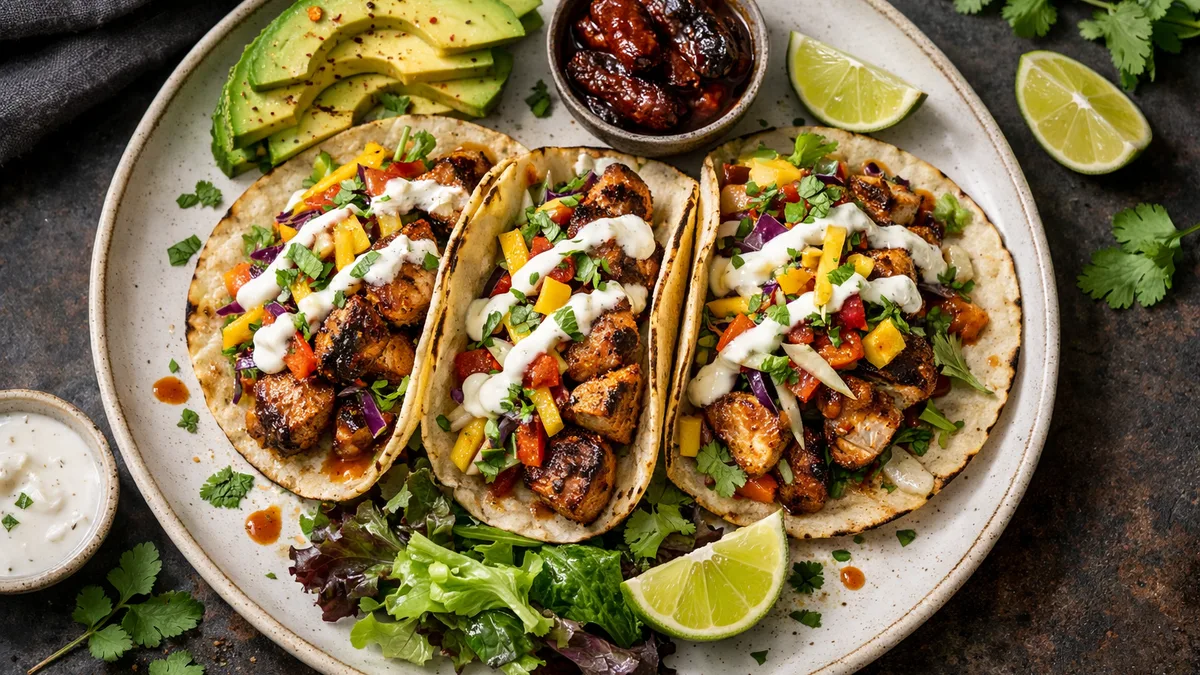 with Mango Slaw & Lime Crema
