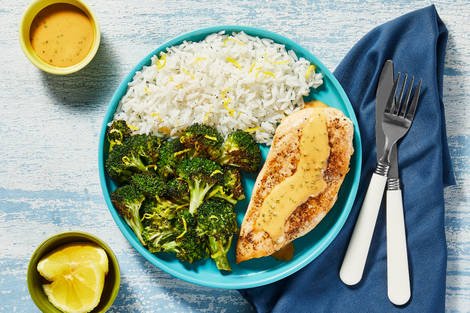 pistachio cauliflower “rice,” spicy lemon carrots, yogurt