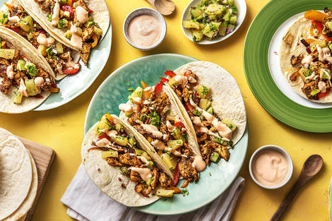 With a Spicy Apple Cabbage Slaw and Lime Crema