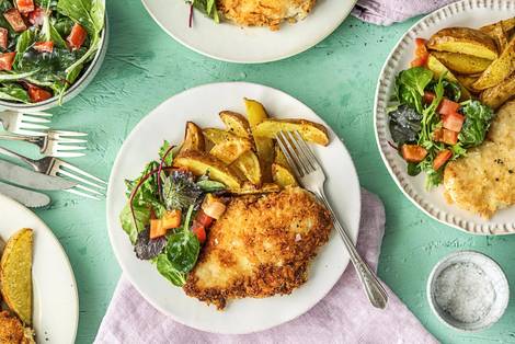 with Roasted Potatoes and Creamy Mixed Greens Salad