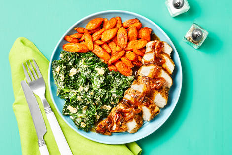 with Harissa Roasted Carrots, Almonds & Apricot Vinaigrette
