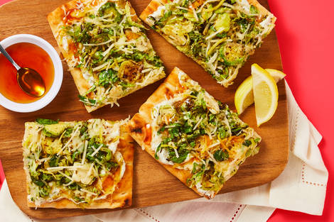 with Peas, Almonds, and Spicy Crema