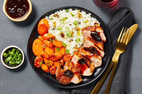 with Chicken Thighs, Pistachio Rice & Hummus Sauce