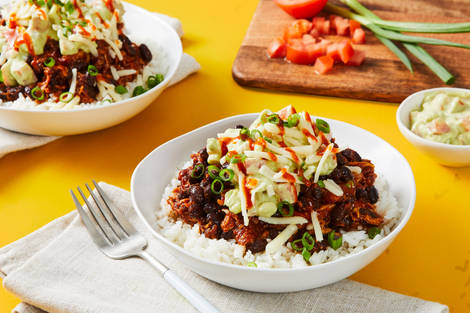 with Rice, Black Beans & Guacamole (serves 2 people)