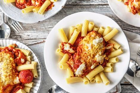 with DIY Marinara, Fresh Mozzarella, and Rigatoni