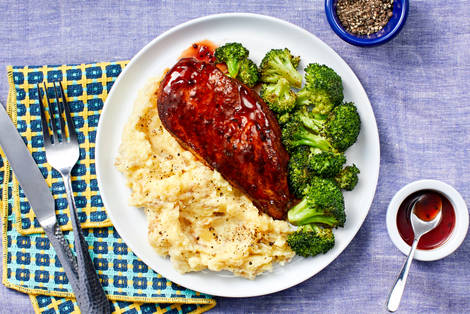 with Roasted Broccoli and Mashed Potatoes