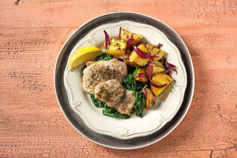 with Spinach Guts and Crispy Potatoes