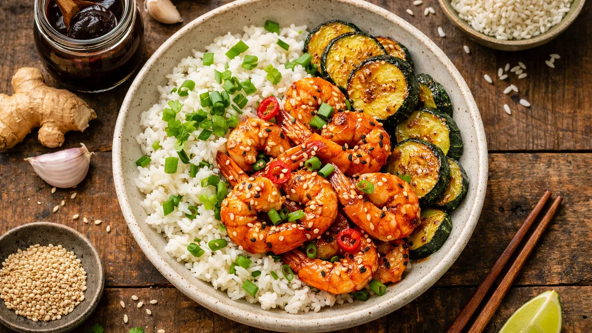 with Scallion Rice and Roasted Zucchini