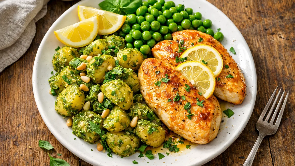 with Pesto Potato Salad and Peas