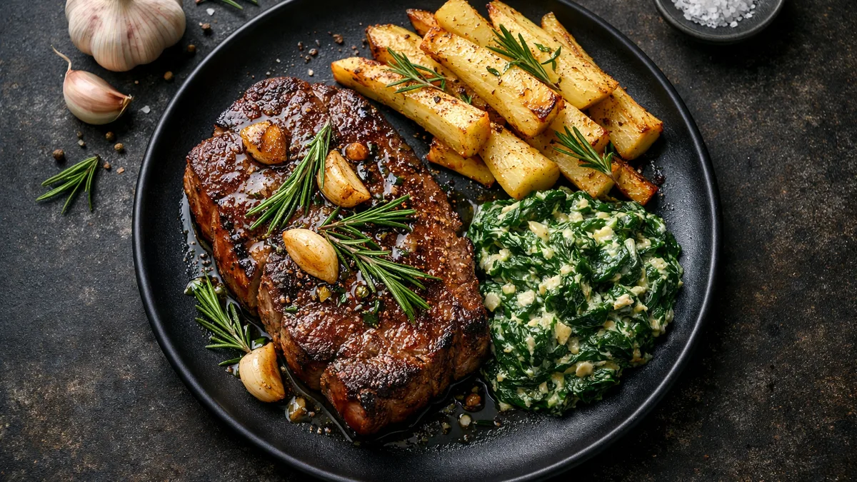 with Creamed Kale and Rosemary Potatoes