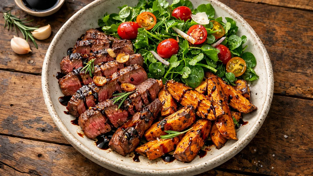 with Roasted Sweet Potato Wedges & Watercress Salad