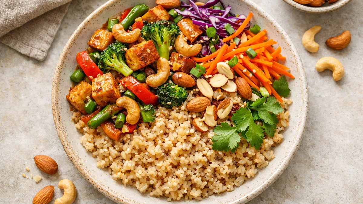 with Green Beans, Carrots, and Cashews