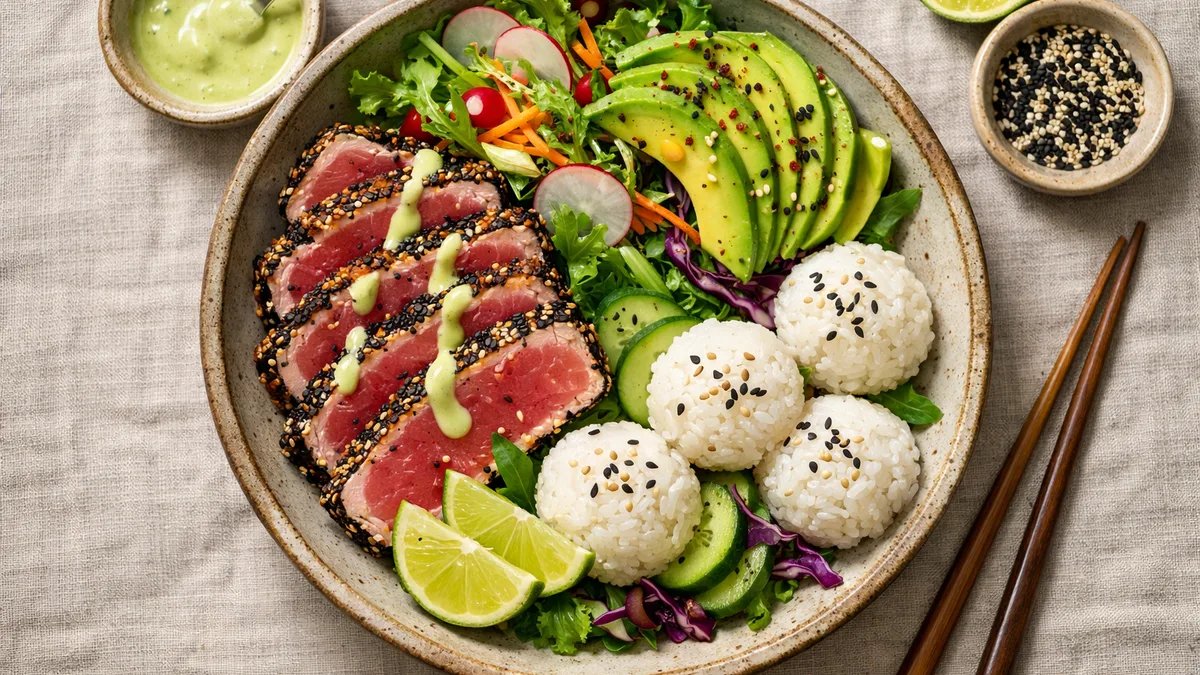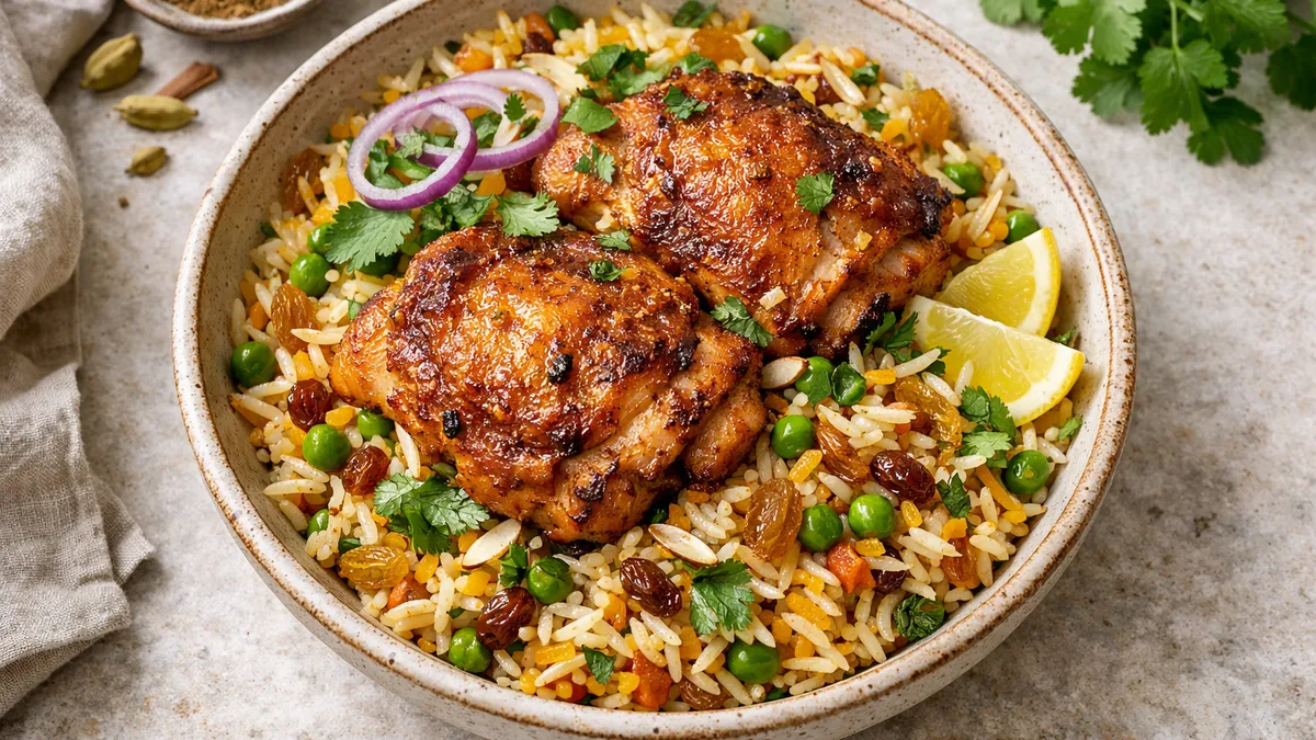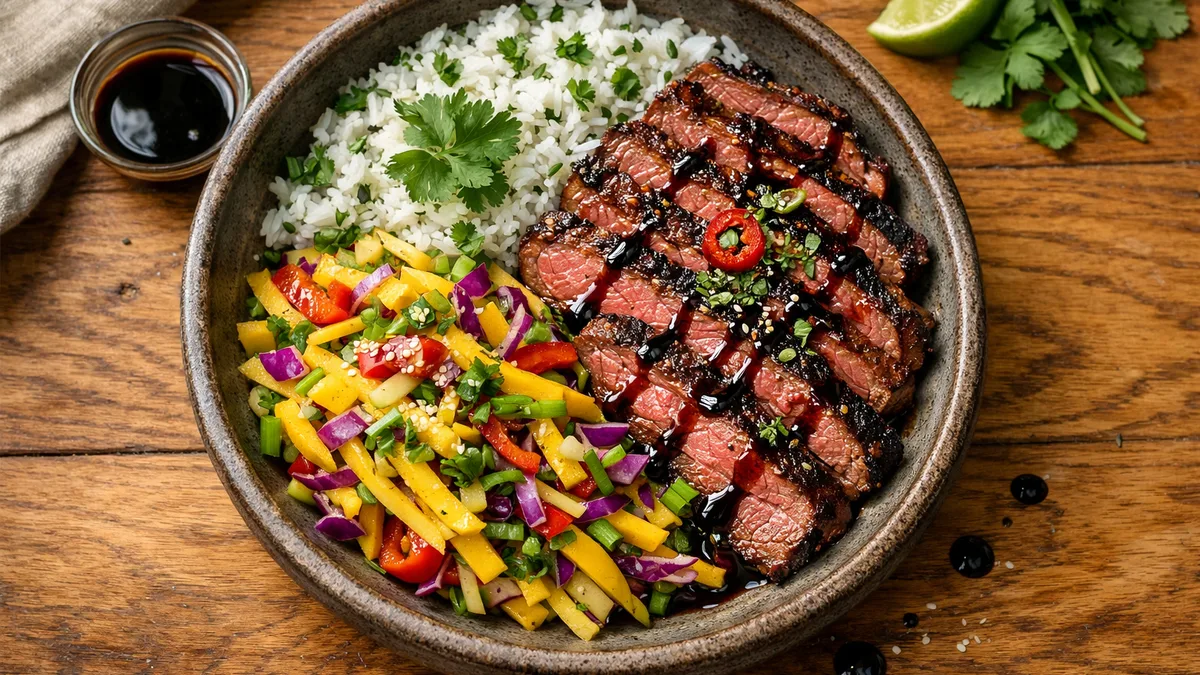 with Sweet Mango Slaw & Cilantro Rice