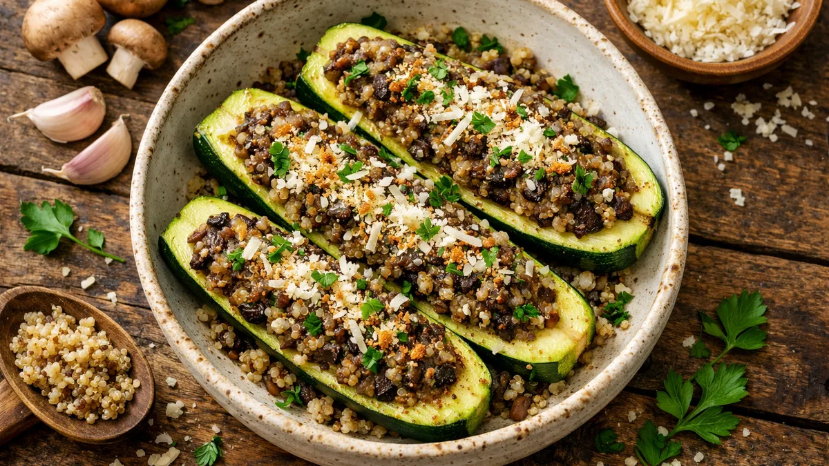 with Mushroom Duxelles, Quinoa, and Parmesan