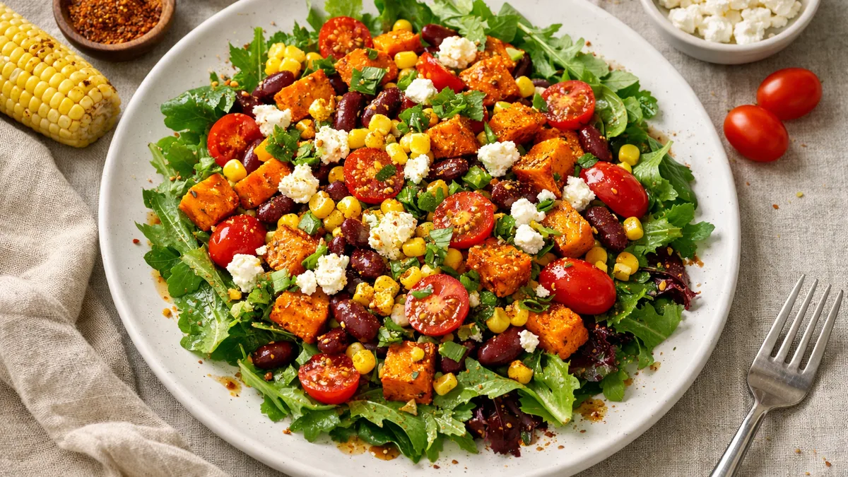 with Roasted Sweet Potato, Feta, and Tomatoes