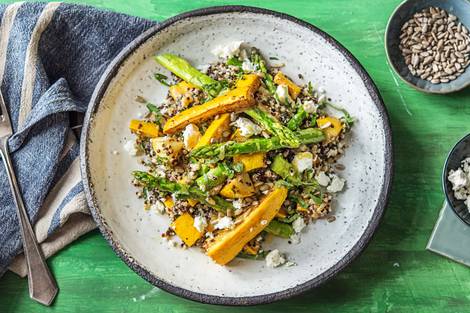 with Asparagus, Yellow Squash, and Sunflower Seeds