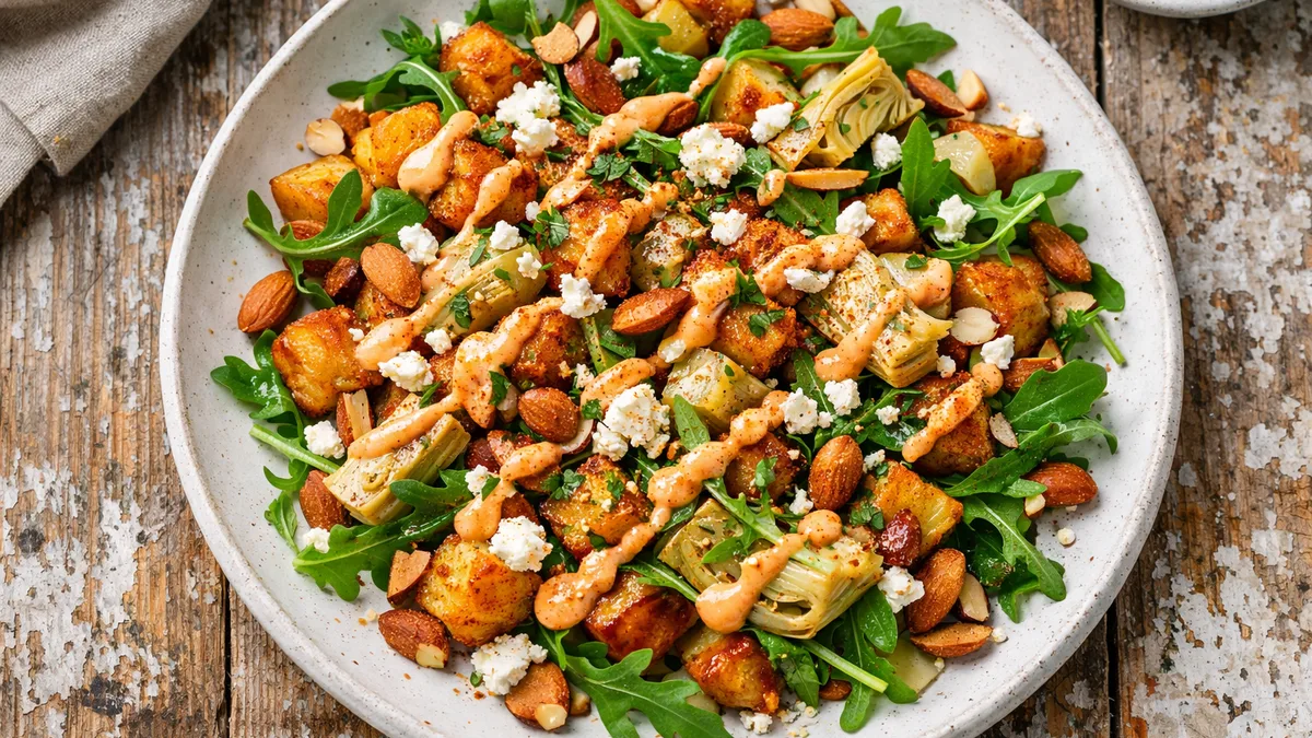 with Spicy Aioli, Almonds, and Feta