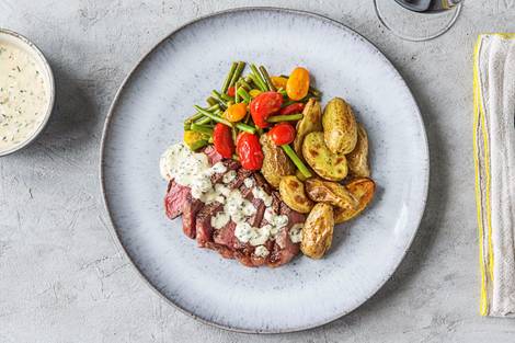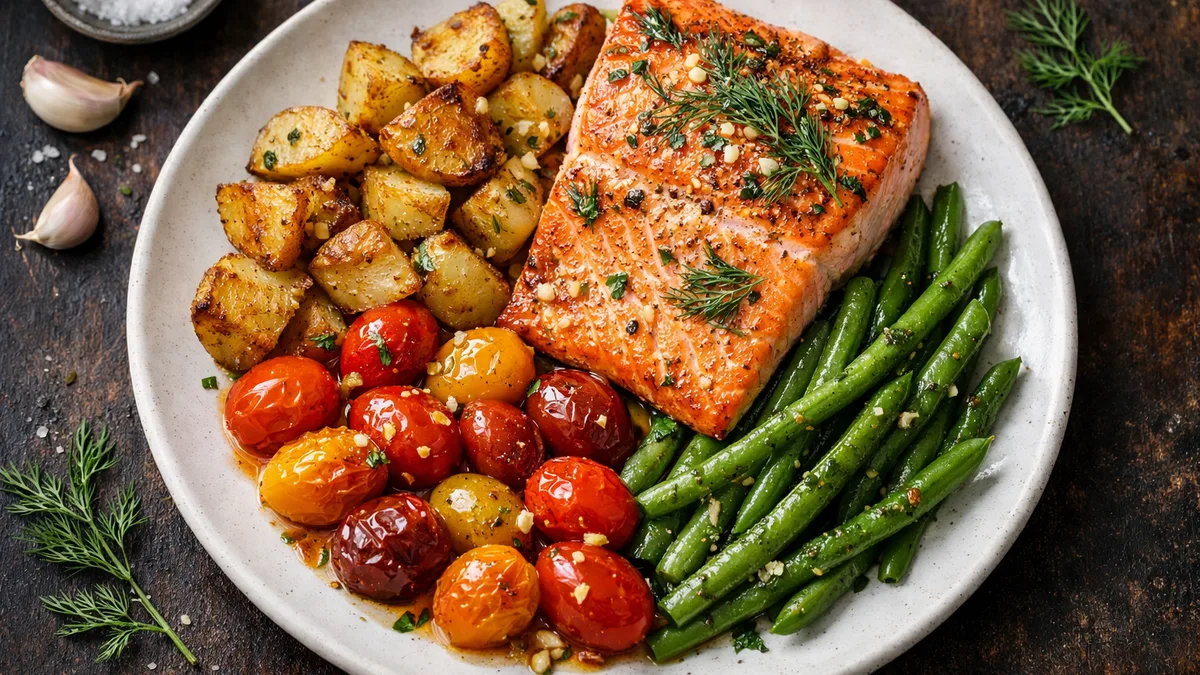 with Crispy Potatoes, Burst Tomatoes, and Green Beans