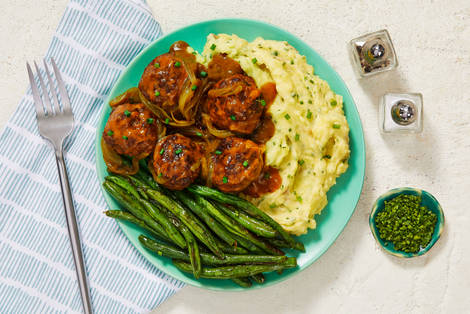 over Chive Mashed Potatoes with Roasted Green Beans