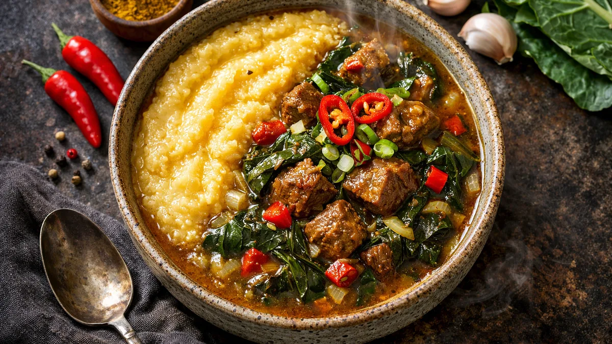 with Spicy Red Chili & Creamy Polenta