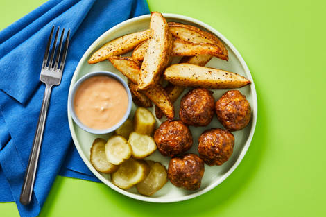 with Garlicky Potato Wedges & Special Sauce Dipper