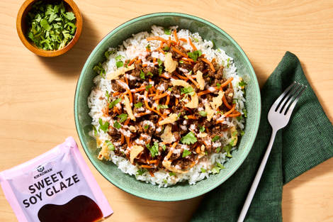 with Jasmine Rice, Sriracha Mayo, Cilantro & Crispy Fried Onions