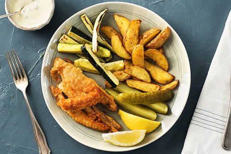 with Tilapia, Dill Pickle Tartar Sauce, and Zucchini