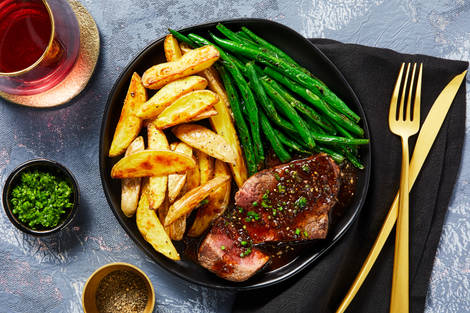with Roasted Green Beans plus Honey-Glazed Peas & Carrots