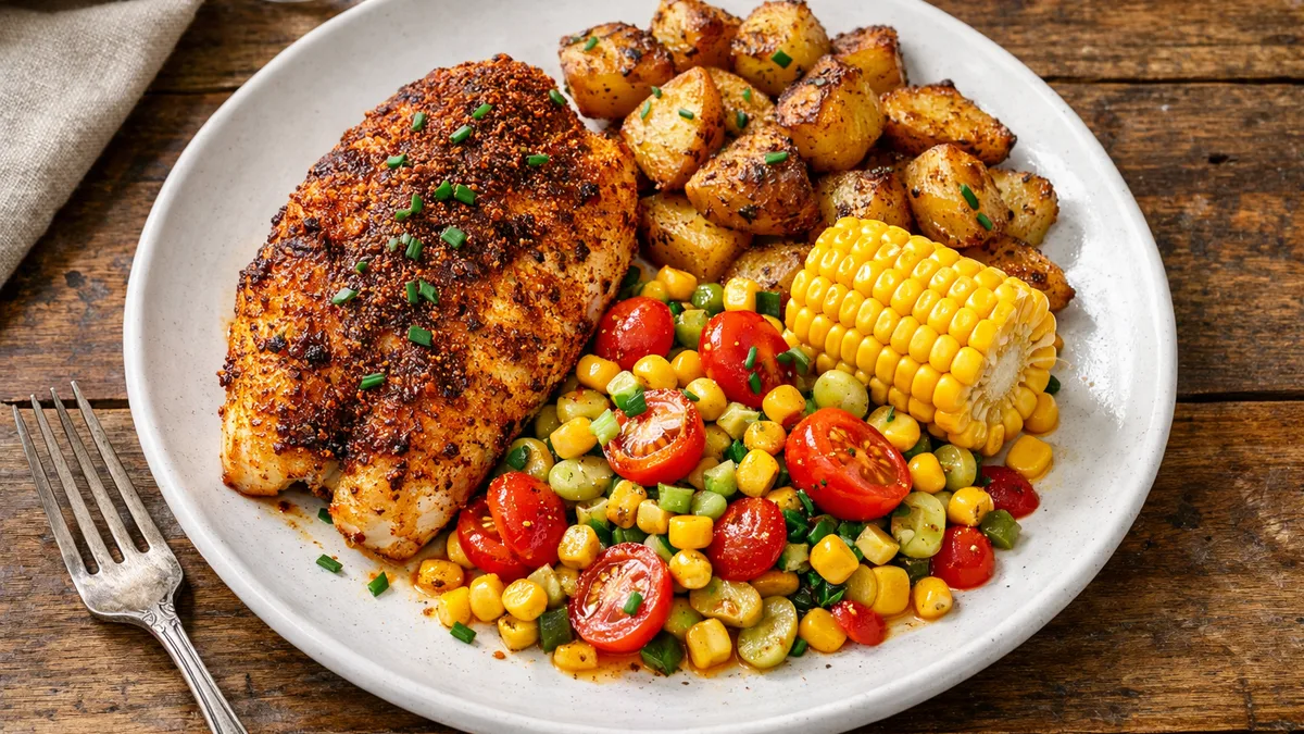 with Southern Succotash and Crispy Roasted Potatoes