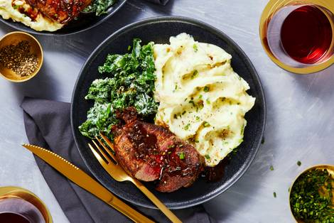 with Garlic Herb Creamed Kale and Mashed Potatoes