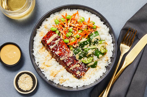 with Ginger Rice & Sriracha Soy Mayo