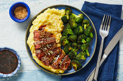 with Wasabi Mashed Potatoes & Roasted Broccoli