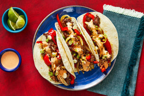 with Tangy Slaw, Sriracha Mayo & Crispy Fried Onions