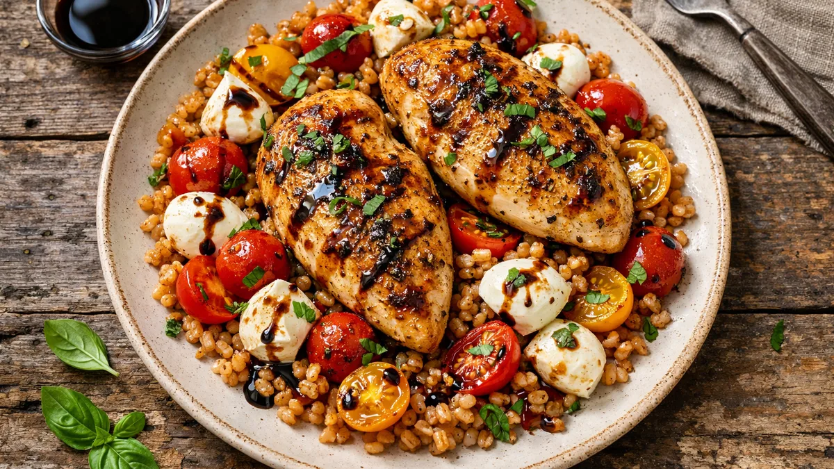 over a Warm Farro, Mozzarella, and Tomato Jumble