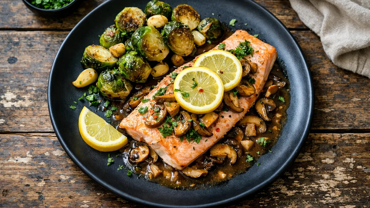 Trout en Papillote with Roasted Brussels Sprouts and Shiitake Mushroom Pan-Sauce